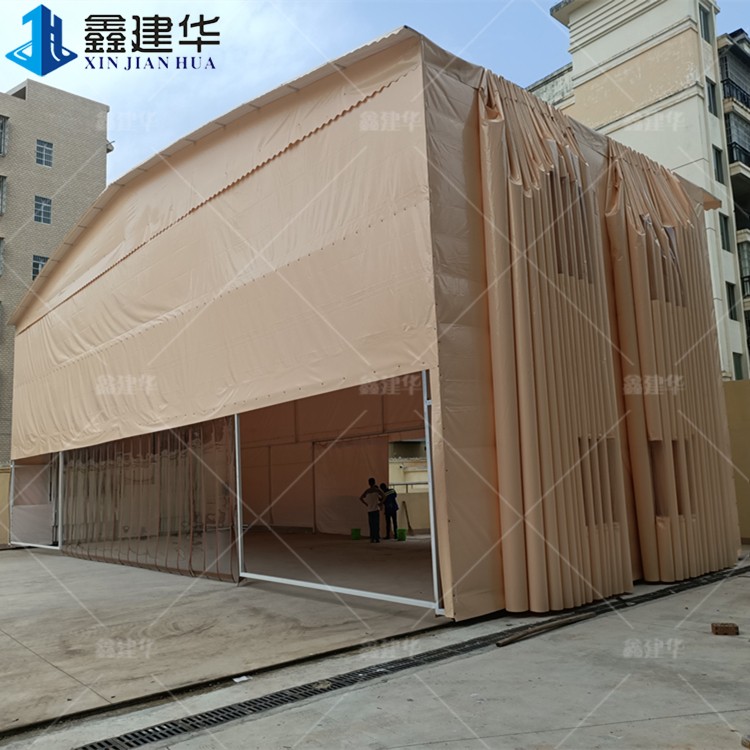 濟南室外電動伸縮雨棚 鋼結構移動推拉篷廠家定制