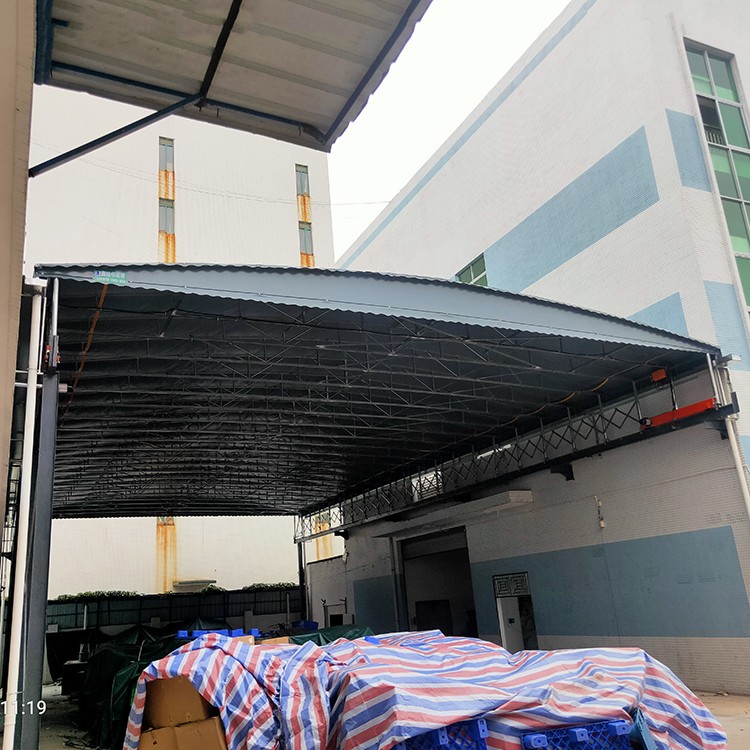 山東廠房過道電動伸縮雨棚 鋼結構活動防雨蓬
