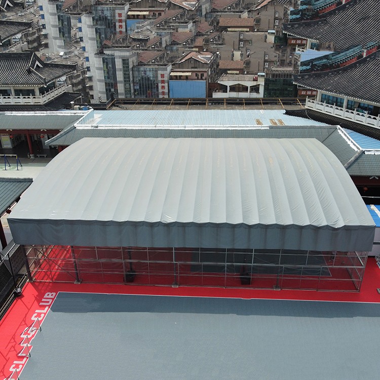 濟南室外電動伸縮雨棚 鋼結構移動推拉篷廠家定制